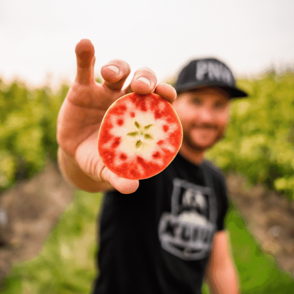 The Lucy™ Apple is a beautiful (and delicious!), naturally red-fleshed apple that is a cross between the Honeycrisp apple everyone knows and loves, and the Airlie Red Flesh apple.