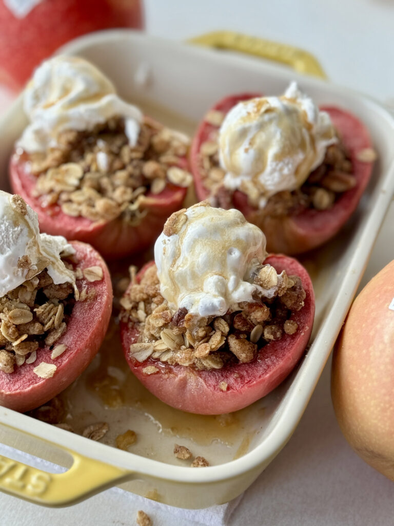 When the weather cools down, there’s nothing better than the scent of baked apples filling the kitchen. These Lucy™ Baked Apples with Oat Crumble are sweet, spiced, and irresistibly cozy — the perfect simple dessert that feels special but takes just minutes to make. With a buttery oat-pecan topping and a pop of Lucy’s signature pink hue, they’re as beautiful as they are delicious.